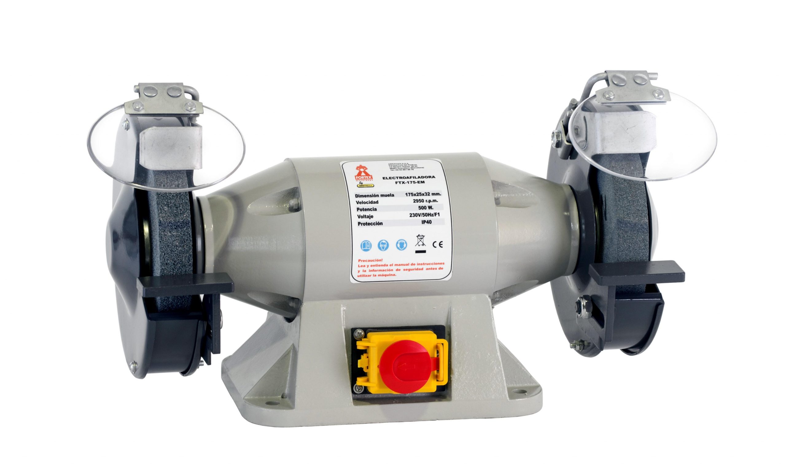 Electroafiladoras profesionales con rodamientos a bolas. Centraje de giro de alta precisión y bajo nivel de sonoridad. Interruptor de desconexión de seguridad. Muelas y protectores incluidos. Máquinas fabricadas según normas CE.