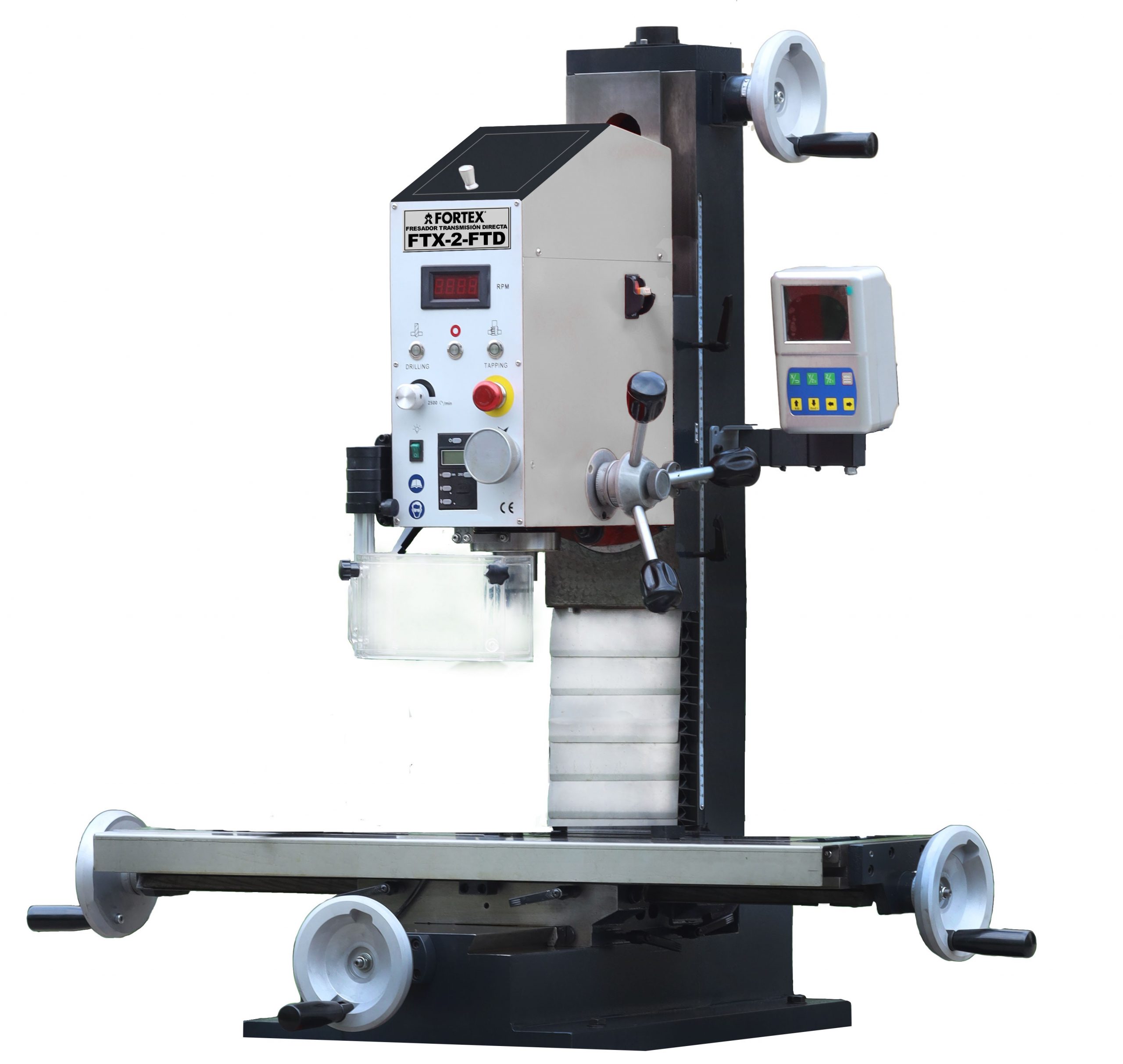 Taladros fresadores para uso profesional con: Guías del cabezal laminadas en cola de milano con regletas de ajuste en forma de cuña. Guías de mesa piramidales laminadas con regletas de ajuste en forma de cuña. Visualizador LED X,Y,X con escalas magnéticas. Cubierta de seguridad portafresas. Cola de milano con protector metálico. Inclinación cabezal +-90º. Máquinas fabricadas según normas CE.